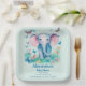 Blue Baby Elephant Baby Shower Paper Plate