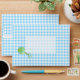 Blue baby gingham envelope for baby announcements or invitations that match-