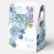 These pretty, floral blue Baby In Bloom favour boxes would be the perfect addition to your celebration. Features blue gerbera daisy and hydrangea blossom flowers with green ferns on a white background.