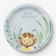 Blue Baby Lion Cub Dusty Blue Baby Shower Paper Plate