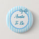 Blue boy's baby shower, white stripes, "Aunt To Be" baby shower button with cute bow.