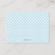 A fun activity for you to include at the baby shower - place these cards on the tables and invite guests to give the new Mummy-to-be advice that she's sure to appreciate and will make lovely little keepsakes for her to keep. Pastel blue and white polkadot design is perfect to coordinate with just about any baby boy shower theme.