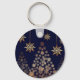 Blue Background with Golden Christmas Tree Key Ring