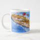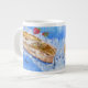 On this wonderful large mug is a watercolor of a crispy french baguette with 2 strawberries on a blue art texture background. Text reads "Le Cafe" and "Du Pain". Which means coffee and some bread. Edit the text to create your own personalised mug.