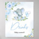 Blue Balloon Floral Elephant Drinks Poster