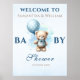 Blue Balloon Teddy Bear Boy Baby Shower Poster
