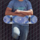 Dd brand skateboard, with graphics of a blue and white bandanna pattern. Customise this board with your own text.
