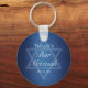 Beautiful deep shades of dark blue create a texture like water on these formal Bar Mitzvah party keychains. Elegant white minimalist script on party favours with your son's name on the subtle Star of David to celebrate your Jewish son's coming of age.