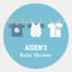 Decorate your baby shower favours and party gifts with this baseball themed baby shower labels! This modern and classy baseball baby shower design has three cute baseball theme baby outfits hanging on a clothesline. A colour palette of blue and white which makes it most suited for a baby boy. Personalise easily with party message.