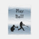 This cool baseball fleece blanket presents a catcher and batter in black silhouette on a blue gradient background with the text: Play Ball. You can easily change or remove the text. Add your favourite player or team!