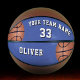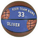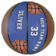 Blue Basketball Ball with Player Team Name Number. The design has two basketballs on the left and the right side and text on a blue background. Add your name, team name and number. This custom personalised basketball is a perfect gift for basketball player, teammate, coach and a great keepsake to remember the favourite sport.