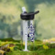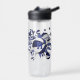 This cool girl's basketball water bottle features an "explosion" of varied size blue and white basketballs and grey and blue star shapes - customise with the athlete's name, monogram and jersey number - by katz_d_zynes
