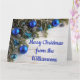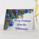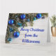 Introducing our very festive personalized Christmas Card - perfect for sending to family and friends! This beautiful card features a stunning white wood background, complemented by pine needles, pine cones and exquisite blue Christmas tree decorations with baubles and bells. With the family name printed on the front, this card is sure to add a bit of festive cheer to your holiday season.