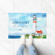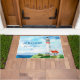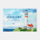 Blue Beach Coastal Ocean Welcome Doormat with a beautiful lighthouse and the family name. Great for a beach front home or as a gift for friends and family living ocean front.