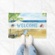 Blue Beach Coastal Ocean Welcome Doormat with sea life graphics and a beautiful beach background. Great for a beach front home or as a gift for friends and family living ocean front.