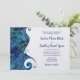 Blue and white water wave and paua shell inspired wedding invitation. This beach or destination wedding invitation is inspired by the tropics, water, paua shells, waves, pearls, and reflections. Perfect for a beach or destination wedding or a wedding with a blue and white colour theme.