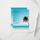 Teal blue Ocean and clear blue sky. Ocean waves crashing to the shore , seagulls flyng in the sky and a silhouette of palm trees - Fully Customisable Wedding invitations and matching extras.
