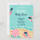 Blue beach summer party surfing baby shower invitation