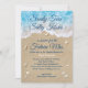 The playful and fun saying, Sandy Toes Salty Kisses a shower for the Future Mrs. accents this bridal shower invitation on a background of aqua blue water, beach sand, seashells, starfish and sand dollars. The back of this invitation is further decorated with aqua blue ocean waves and a pair of cute sand dollars. This bridal shower invitation is perfect for seaside, tropical, Caribbean, nautical, poolside or beach inspired shower. If additional coordinating items are needed, just contact us at prettyfancyinvites@gmail.com with your request. It is shown on the matte paper; however, the weight and texture of the white felt paper is my favourite choice for this invitation.