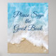 This Please Sign the Guest Book wedding sign is beach inspired and accented with blue ocean waves, beach sand, starfish, sand dollars and sea shells, making it perfect for the beach, tropical or destination wedding. It is part of the Blue Waves Wedding Collection.