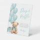 Blue Bear Baby Shower Diaper Raffle Pedestal Sign