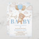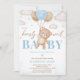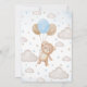 Celebrate your baby boy with this adorable Blue Bear Balloon Baby Shower Invitation. This sweet design features a charming bear holding blue and brown balloons, surrounded by soft clouds and twinkling stars, creating a dreamy and peaceful vibe. Set the scene for a magical and heartfelt celebration with this sweet blue bear invitation. BBS758