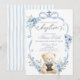 Blue Bear Baptism Bow Coquette Invitation, Teddy Bear Boy Christening Invite, Editable Catholic Baptism