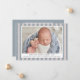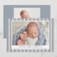 Celebrate the arrival of your little bundle of joy with our blue and beige striped birth announcement photo cards. The farmhouse style birth announcements display your baby's photo on the front with a background of blue and beige linen stripes. Personalise the front of the announcements by adding the baby's name and birth information (birth date, length, weight, etc.). The simple boy birth announcement reverses to feature an additional photo with space for a message in white text with a blue background.