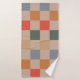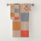 Blue Beige Orange Brown Chequered Gingham Pattern Bath Towel Set