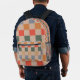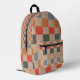 Blue Beige Orange Brown Chequered Gingham Pattern Printed Backpack
