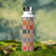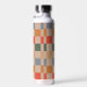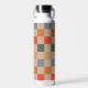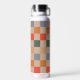 Blue Beige Orange Brown Chequered Gingham Pattern Water Bottle