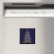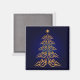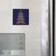 Get into the holiday spirit with this beautiful gold bell tree magnet with a blue background.