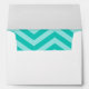 Blue Bicycle and Chevron Mailing Envelope. A cute blue bicycle sits in the bottom right hand corner on these mailing envelopes. Brackets in grey sit in the middle so you can write out the address in the middle of them. A very cute and whimsical bicycle envelope. Back flap opens up to reveal cute blue chevron pattern