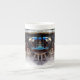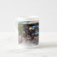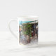 Casual, relaxed, riding around on bicycles, these are some of the things that make up the comfortable lifestyle pictured in the original photograph by ZoeSPEAK on this Bone China Mug, An aqua blue bicycle leans against a post in front of an open air bar in Key West, Florida. There is a leafy green bush in a tub, under an awning which matches the colour of the bike. The dark interior of the place is filled with wooden bar stools, and aqua and cobalt blue umbrellas over the tables. An aqua blue bar in front completes the colourful photo.