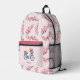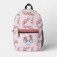 This backback will spring you into spring! What's more lovely than a bicycle ride through flower gardens and cherry trees. This sakura style design features a cute light blue bicycle with your name monogram in script typography on the pocket. The background has cute pinkish red cherry blossoms spread out on a pretty pink.