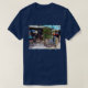 On this T-Shirt - Casual, relaxed, riding around on bicycles, these are some of the things that make up the comfortable lifestyle pictured in this original photograph by ZoeSPEAK, of an aqua blue bicycle leaning against a post in front of an open air bar in Key West, Florida. There is a leafy green bush in a tub, under an awning which matches the colour of the bike. The dark interior of the place is filled with wooden bar stools, and aqua and cobalt blue umbrellas over the tables. An aqua blue bar in front completes the colourful photo, and the text above and under the photo says “KEY WEST”, “RELAX”.