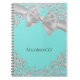 Blue Big White Bow Diamonds Glam Custom Spiral Notebook