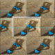 Blue two-piece bikini on beach sand female shadow to customise, personalise by changing to your name