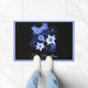 European inspired door mat done in black with a light blue border and with graphics of blue bird and blue and white Edelweiss flowers. Personalise the custom text to suit your needs.