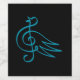Line art of treble clef symbol forming a blue bird.