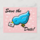 A charming postcard featuring a digital illustration of a elegant blue bird carrying an envelope sealed with a heart. Perfect for Weddings, baby showers and other occasions!