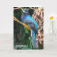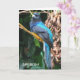 A beautiful blue bird with long tail feathers sitting on a branch.
