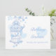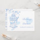 Cute bird couple in line art graphic drawing of open bird cage hanging from a blossoming spring tree with hearts. Fashionable modern chic wedding design part of the the bird cage romantic wedding stationary set. Pretty pastel shades blue and aqua on a white background colour. Edit this invitation with your own name, dates and words. Unique drawing and design by Sarah Trett.