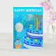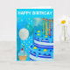 Blue Birthday Cake, this design features a blue birthday cake and blue balloons in watercolor.