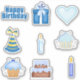 A cute set of blue birthday themed stickers for you to mix and match on your card crafting or gift decorating projects,. Your choice of size and finishes.
