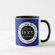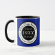 Blue, Black and White, Class Reunion Mugs. Nice, Class reunion gift ideas for ANY YEAR and CHANGE COLORS. Class reunion mugs come in a variety of Accent Colours, White Ceramic Mugs, 11 oz or 15 oz, Latte, Travel Mugs and more. See brief instructions Below to Fully Customise these coffee mugs or, BEFORE you Order, CALL Designer Linda: 239-949-9090 EST 10am to 6pm Monday to Friday or as available. I can CHANGE the COLORS, Designs, Text or HELP you to make many changes. Only I, Designer Linda can Change the Black and White Circle and centre round designs. You can change the Blue background and Black and White Text, change the Text Style, Size, Colours, etc.