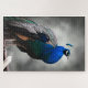 Blue, black, yellow, green and white peacock photo 1014 pieces adult Jigsaw puzzle and dual as an unique wall art for the living room.