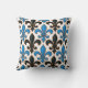 Blue Black Baroque Fleur-de-lis Pattern Design Cushion