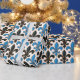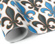 Blue Black Baroque Fleur-de-lis Pattern Design Wrapping Paper