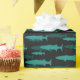 Cool barracuda print gift wrap. Blue barracudas swimming on a black background.